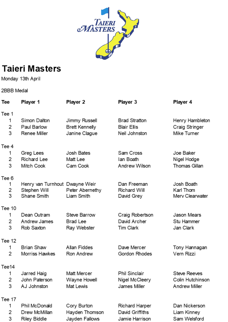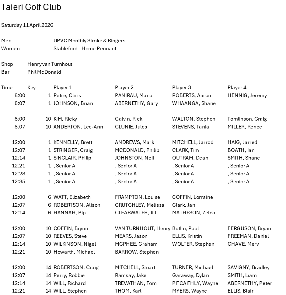 Draw – Saturday 14th March